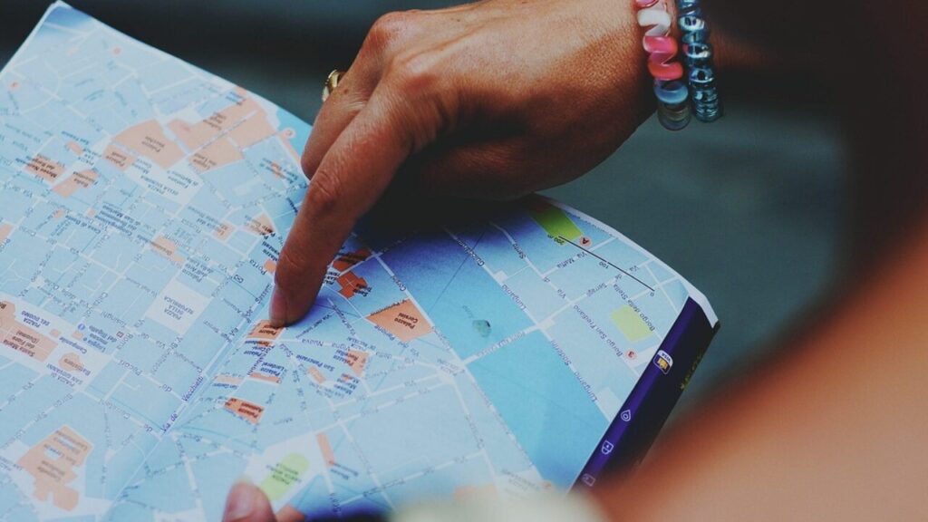実際の道でも地図でも、手で指し示しながら道案内をするとカンタンな英語で済むのでおすすめです!